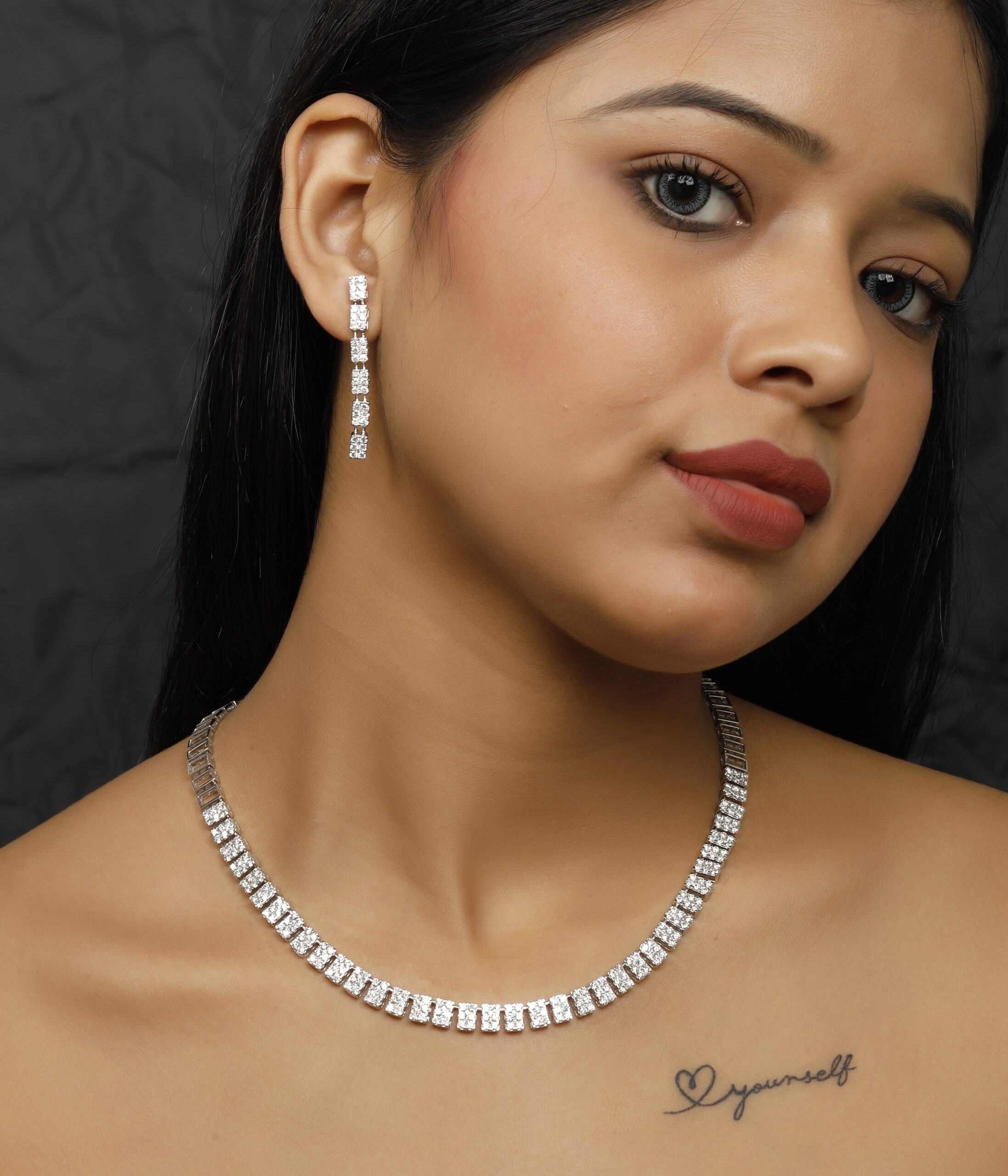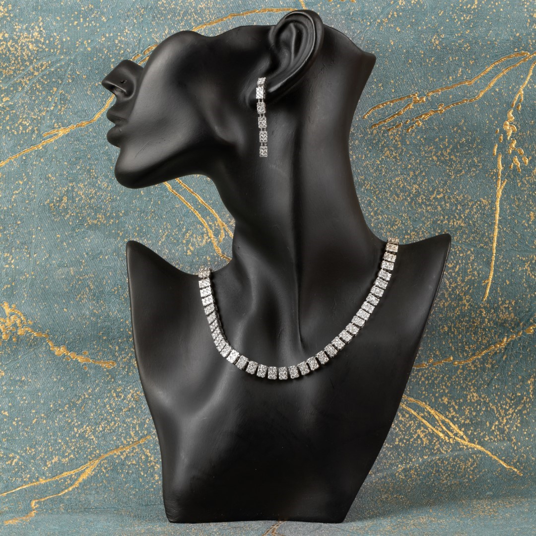 Name : Rectangle single string necklace 14K Hallmark and 18k (both available) Gross Weight – 36.54 gram Diamond Weight – 9.153 ct Diamonds Color – H/I Diamonds Clarity – VS/SI Size – Free Size